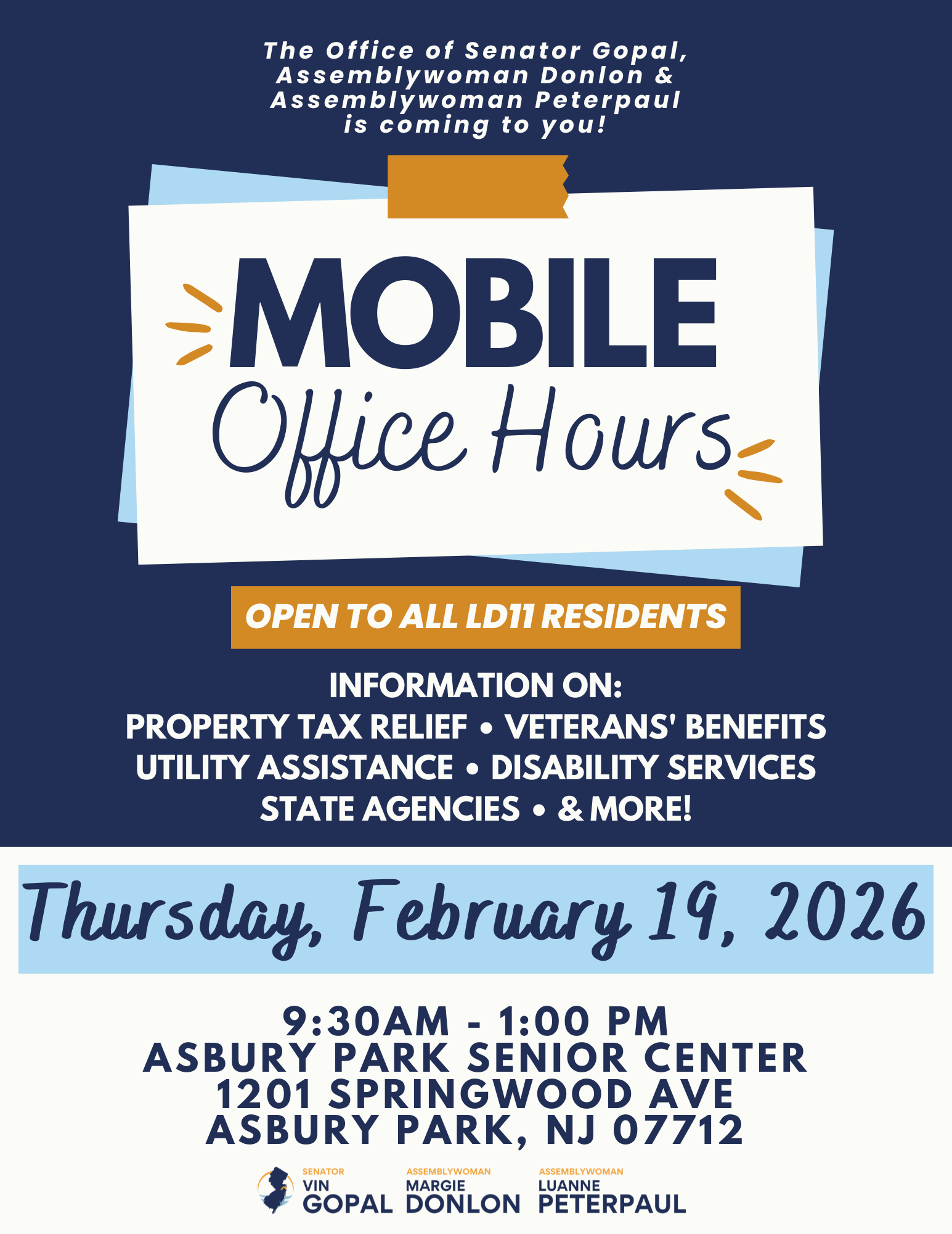 Please RSVP: Mobile Office Hours - Asbury Park Senior Center